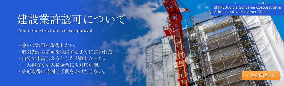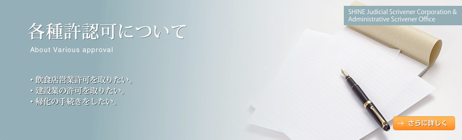- 各種許認可について ・飲食店営業許可を取りたい。 ・建設業の許可を取りたい。 ・帰化の手続きをしたい。